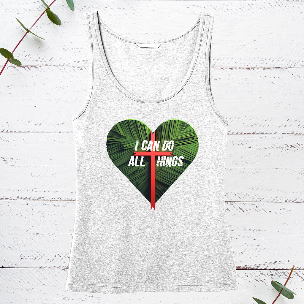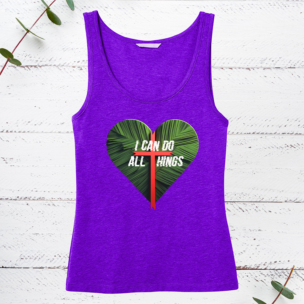 Get the "All Things 2" Women's Tank top today, it's the second design in the All Things series of designs! Based on the scripture Phillipians 4:13 "I can do all things through Christ who strengthens me"! Empowering the believer who relies on Christ to give them strength in their everyday lives!