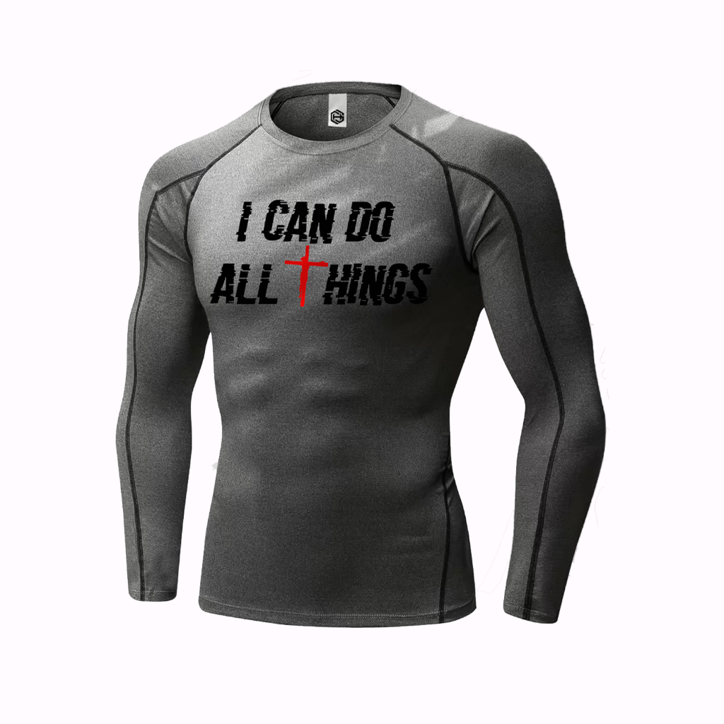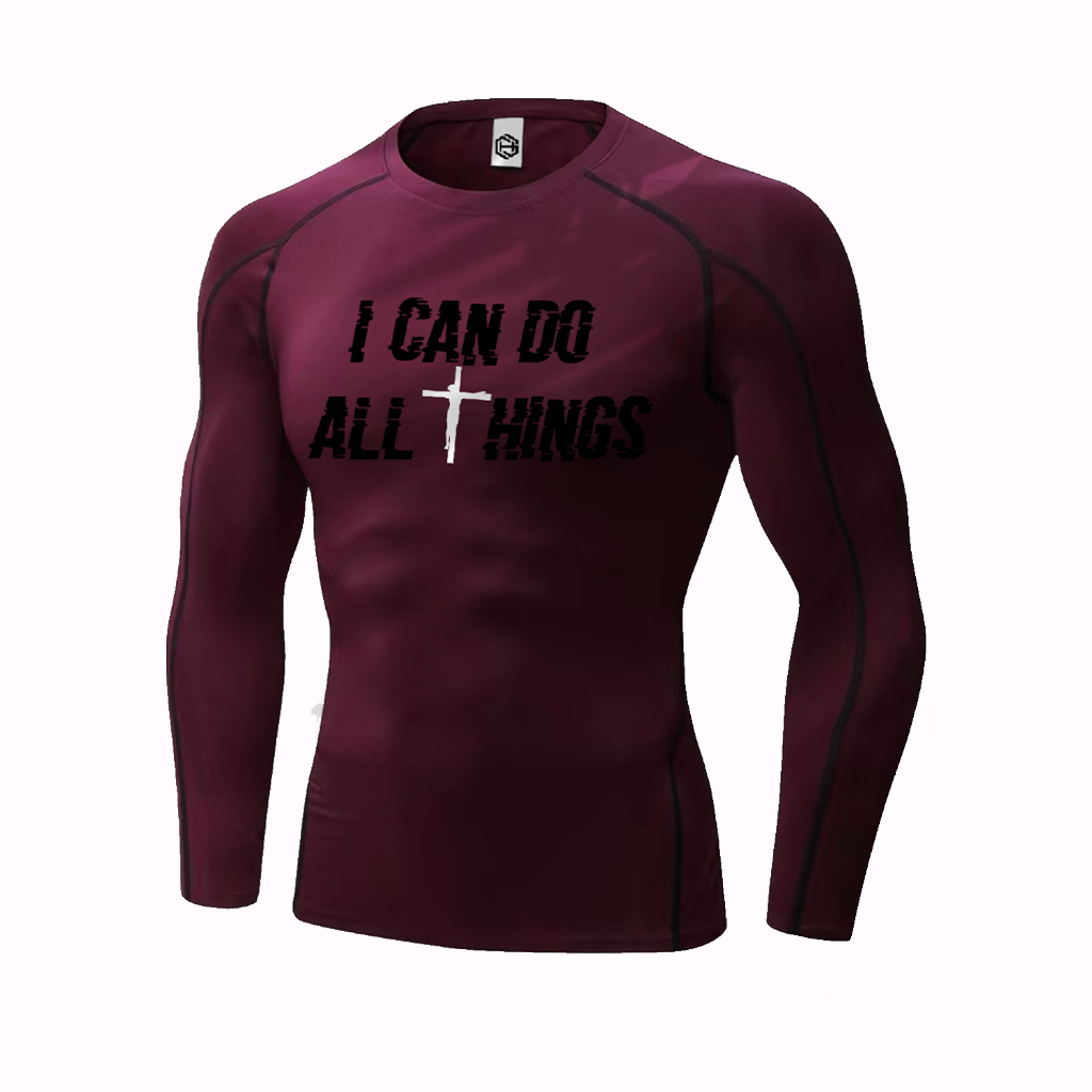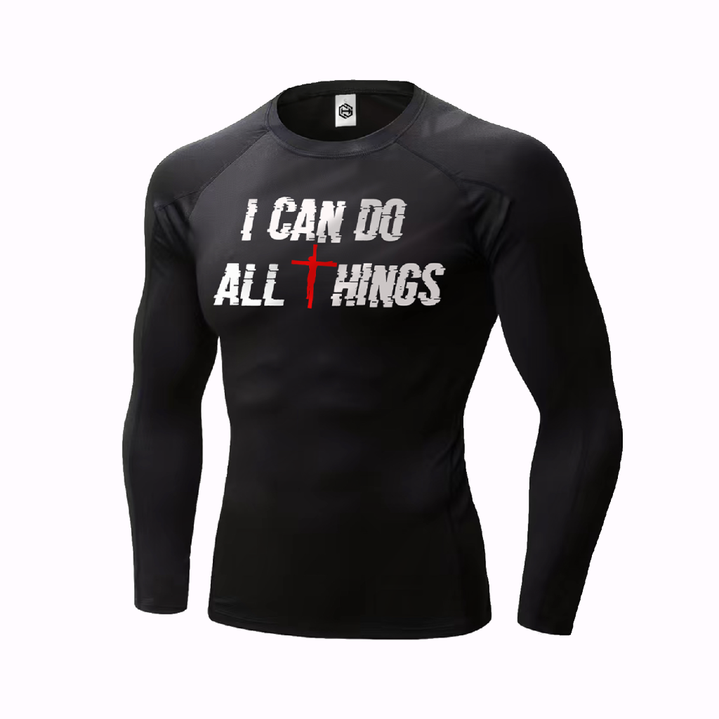 Get the "All Things" Compression Long Sleeve Shirt today with FREE Shipping! Based on the scripture Phillipians 4:13 "I can do all things through Christ who strengthens me".
