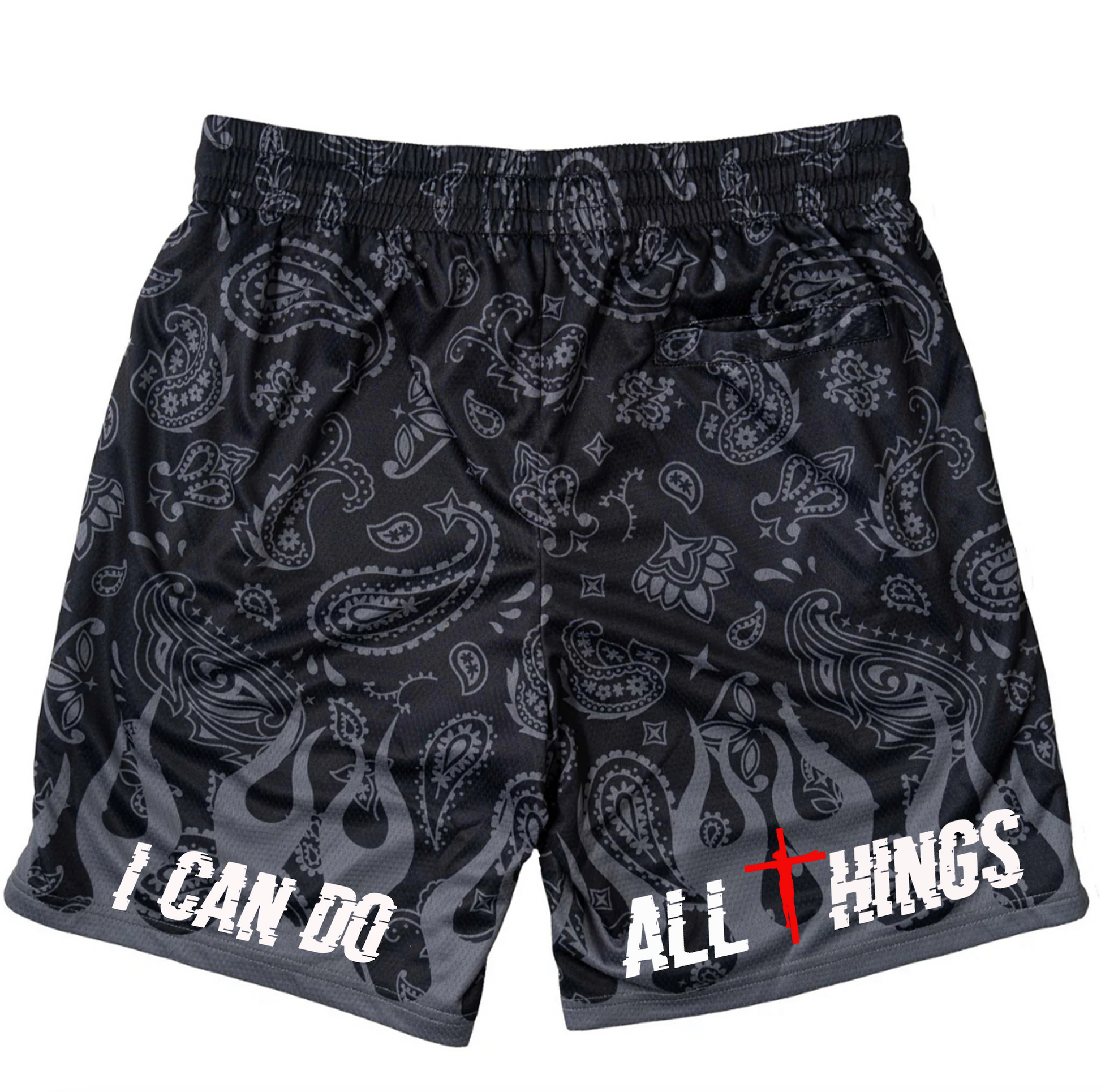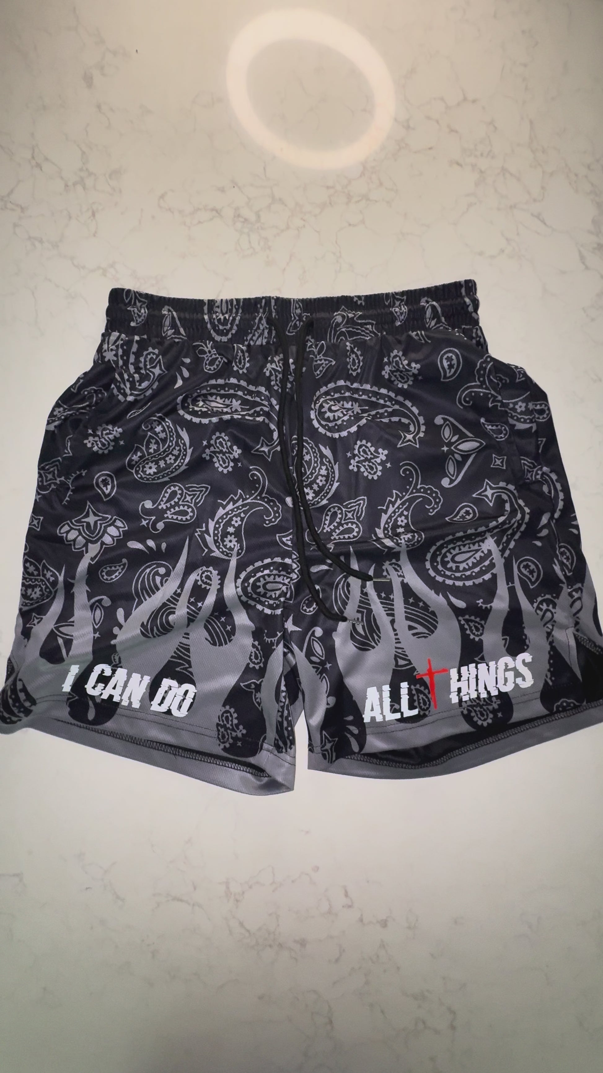 Introducing the newest must-have in the Paisley shorts lineup: the All Things Fire Paisley shorts! These bold shorts ignite the spirit of the All Things collection with a unique design that embodies the fierce message, I CAN DO ALL THINGS, through Christ. Stand out and wear your strength with these one-of-a-kind shorts.