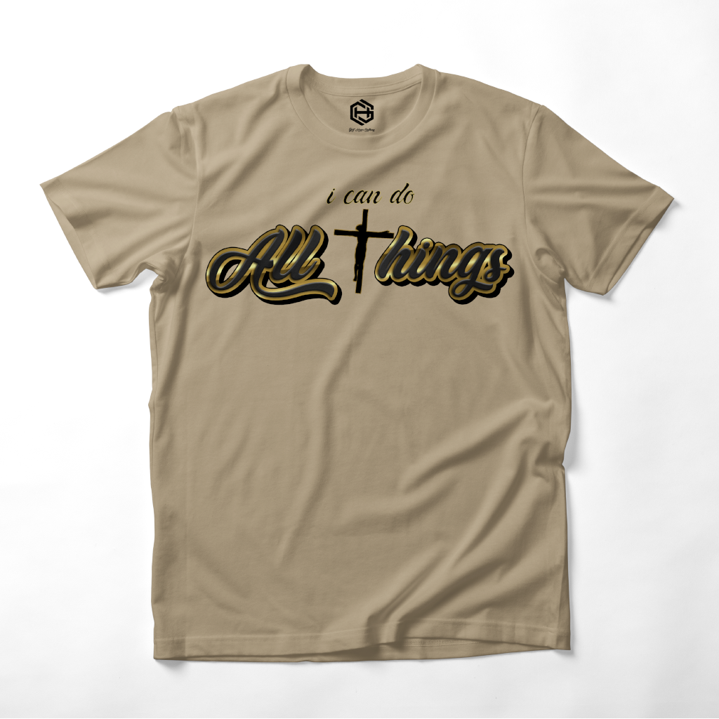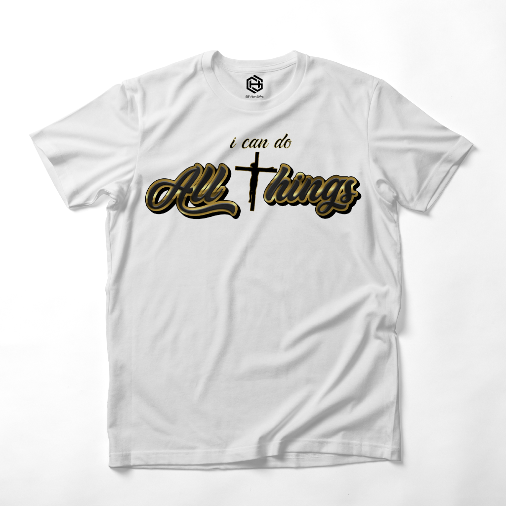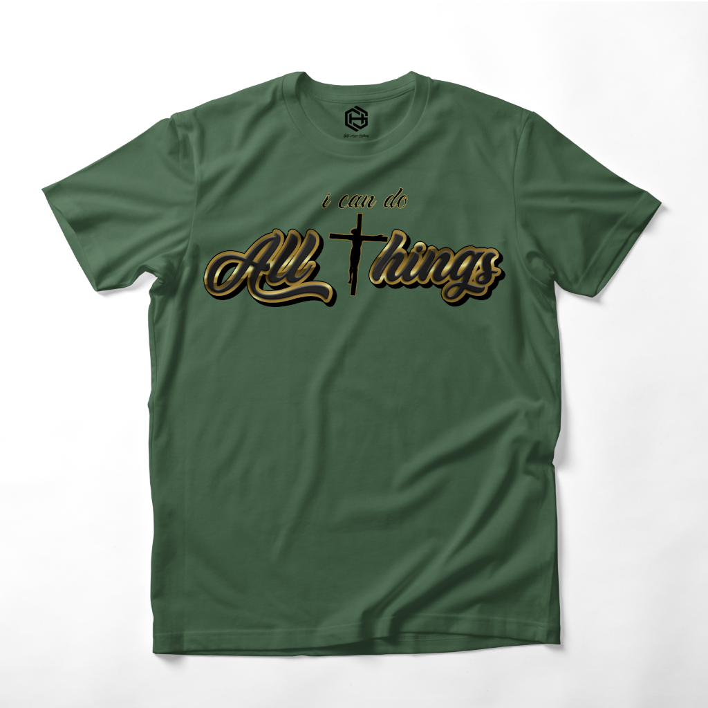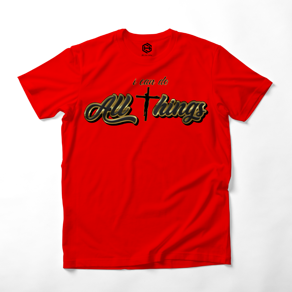 You can do ALL THINGS through JESUS!!! Thatās what this T-shirt is based on the famous scripture Phillipians 4:13! Another T-shirt from the popular T-shirt āALL THINGSā series!
