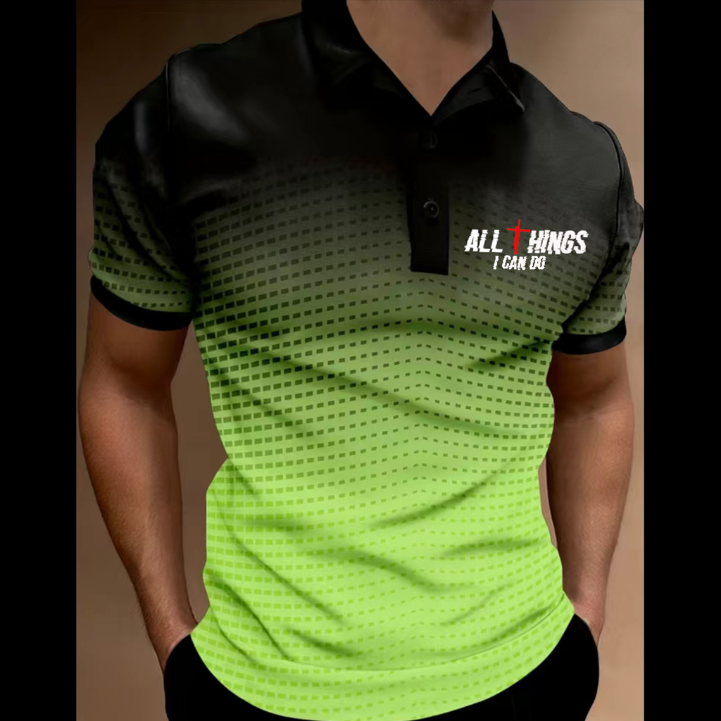 Get the NEW "All Things" Golf Shirt Today! With FREE Shipping! Stylish and comfortable for athletic use! Designed to keep you cool through high temperatures! This Polo Shirt will not only help your overall play, but have you comfortable while playing! Because you can do ALL THINGS through CHRIST who strengthens you!