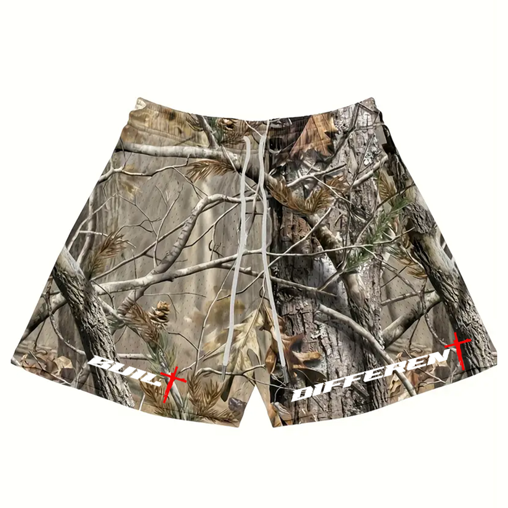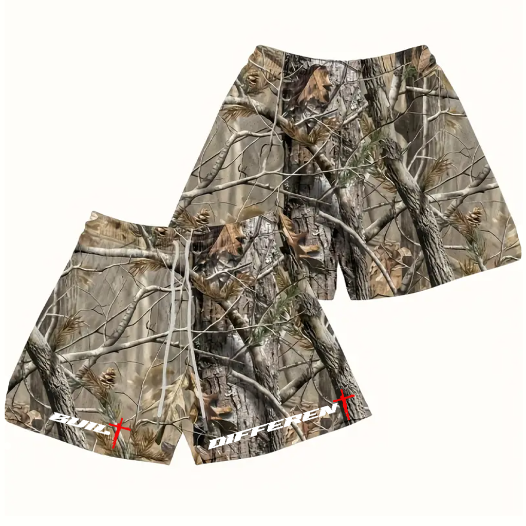 Get your "Built Different Outside Shorts" 6" SEAM SHORTS today! With free shipping, you can get the fan favorite "Built Different Outside Shorts"! Featuring Tree camo, these shorts combine bold style with a powerful statement!