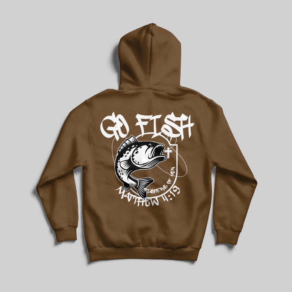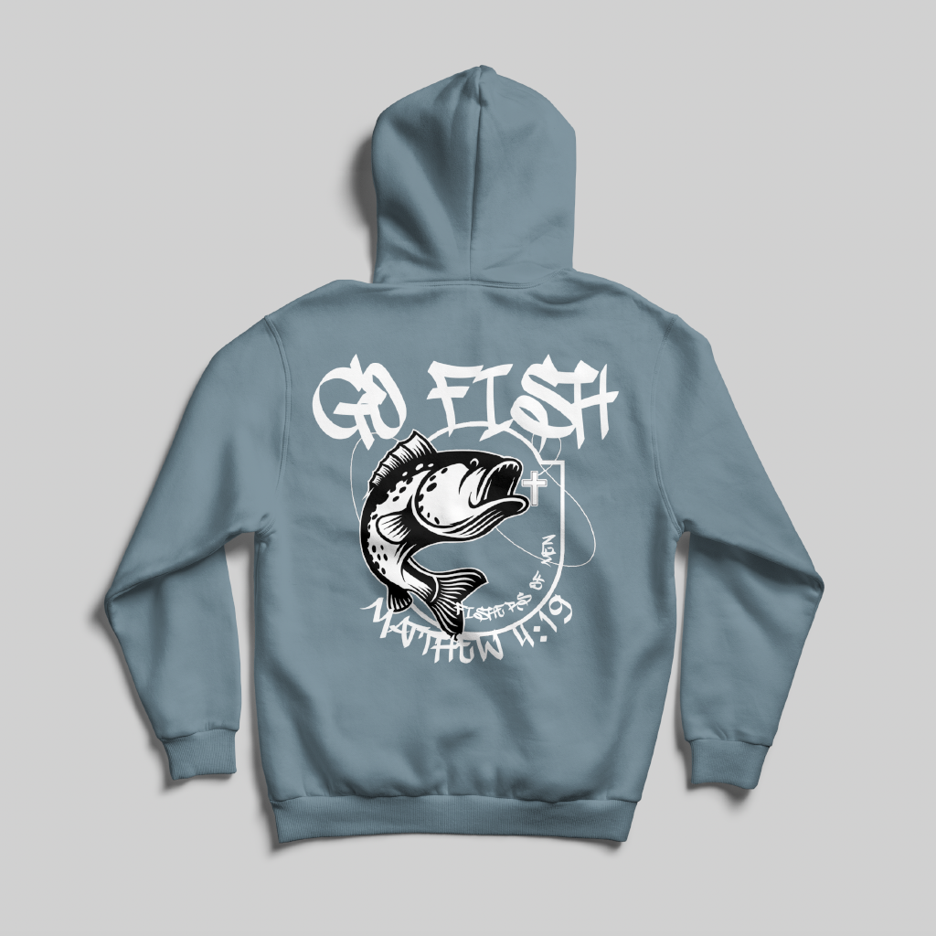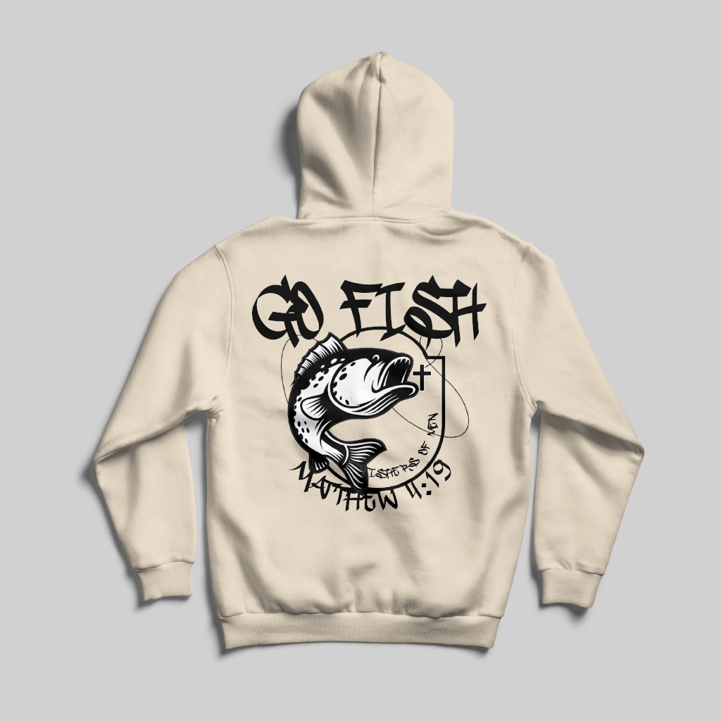 Based on the scripture Matthew 4:19 "Then He said to them, Follow Me, and I will make you fishers of men.” This hoodie beckons all Jesus followers to "GO FISH", spreading the Gospel to everyone you encounter! And watch as Jesus transforms you into a fisher of men!