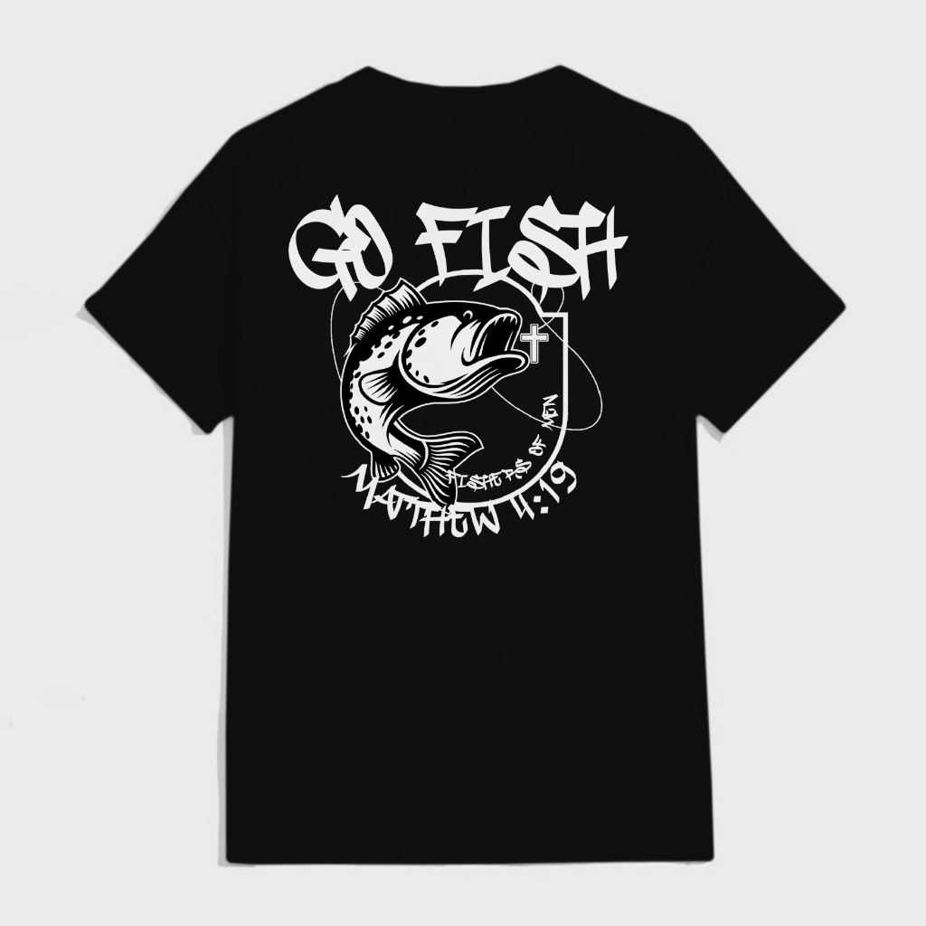 Get your "Go Fish" T-shirt today with FREE shipping! Based on the scripture Matthew 4:19 "Then He said to them, Follow Me, and I will make you fishers of men.” This t-shirt is a call for all followers of Jesus to "GO FISH", which means bring the Gospel to everybody you come into contact with! And watch Jesus make you a fisher of men!