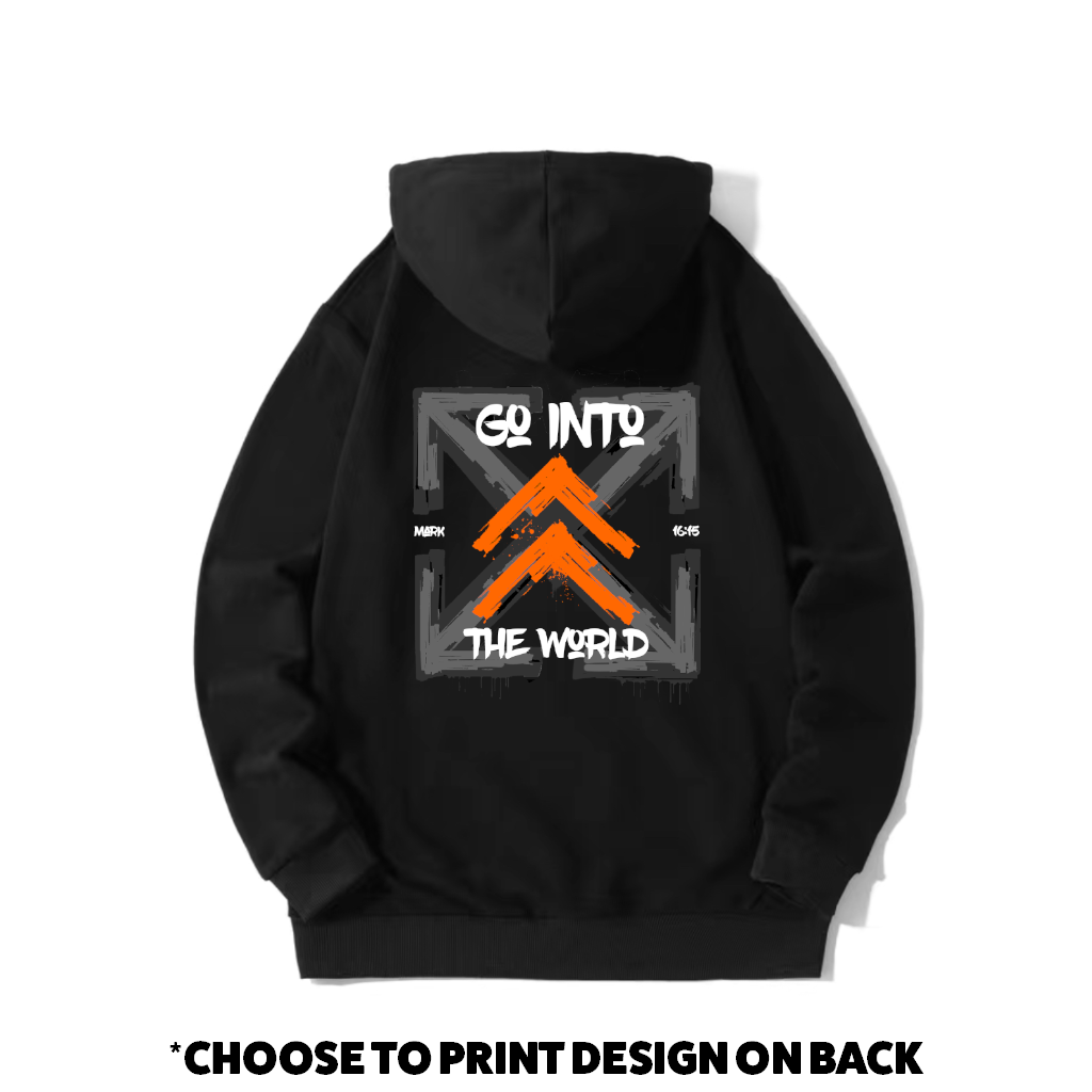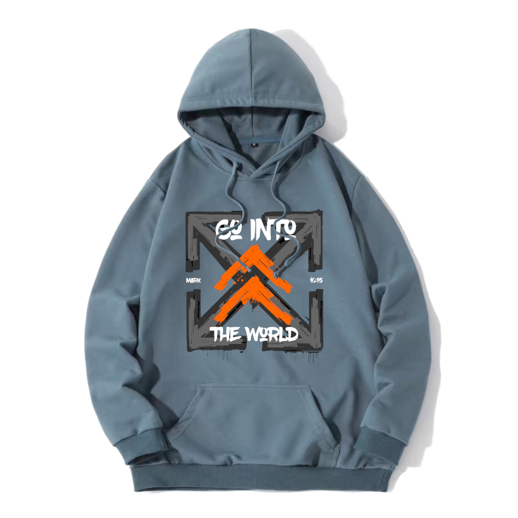Get your "Go Into The World" Hoodie Today with FREE shipping! Based on the scripture Mark 16:15 "He said to them, “Go into all the world and preach the gospel to all creation."