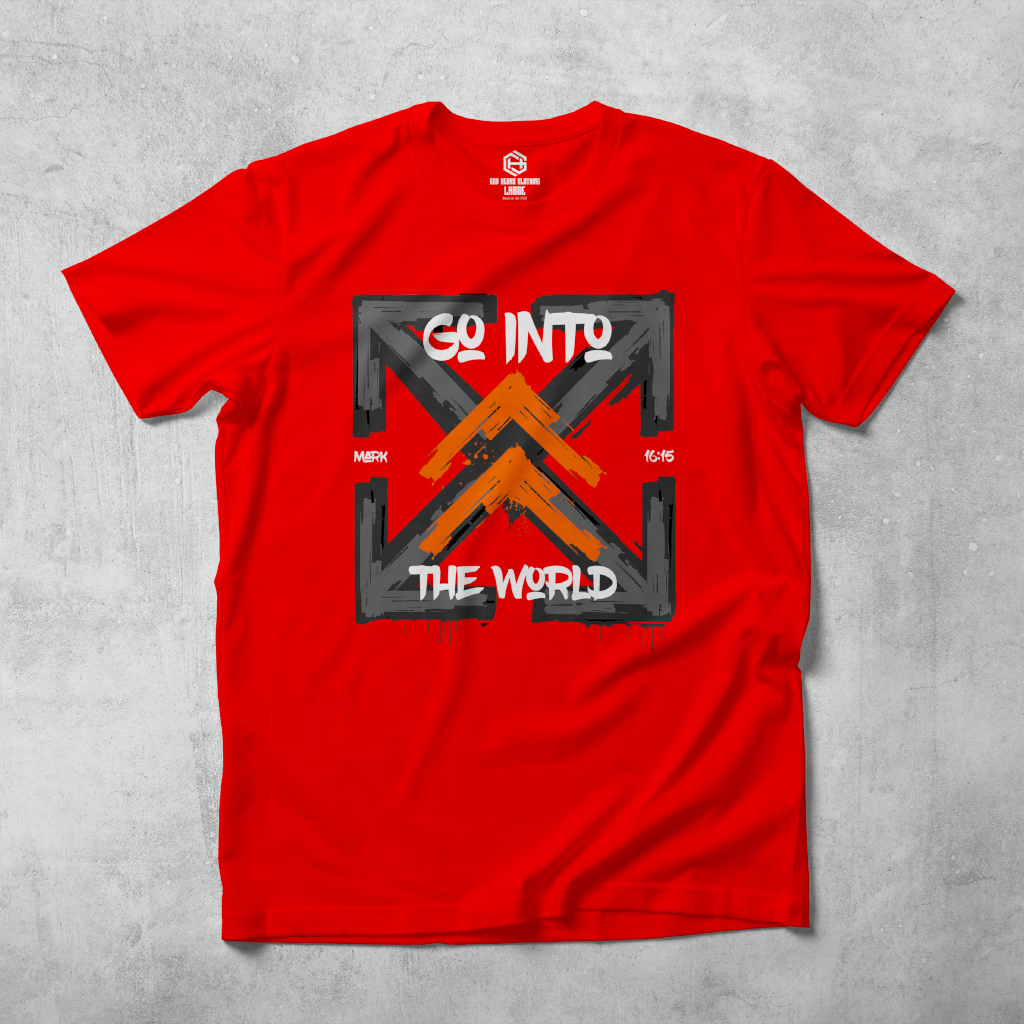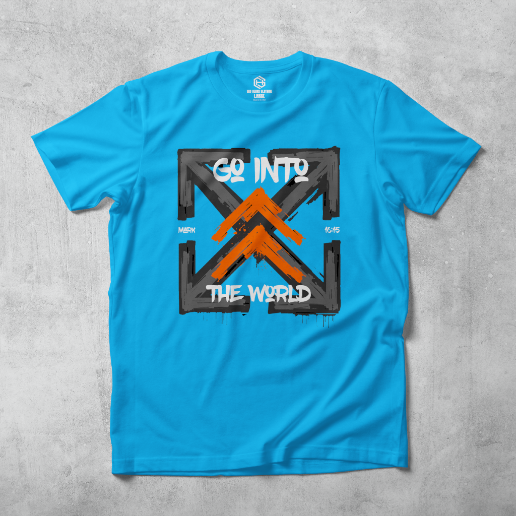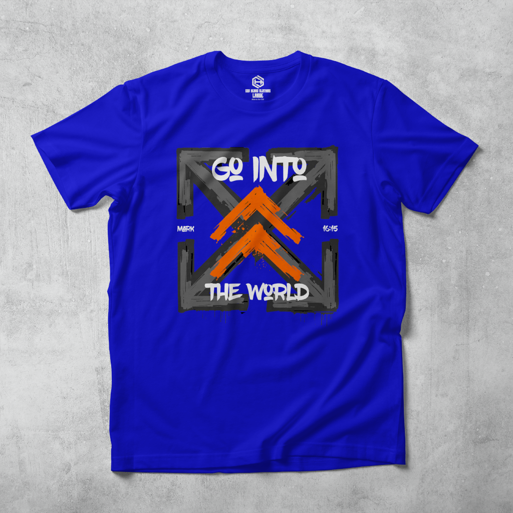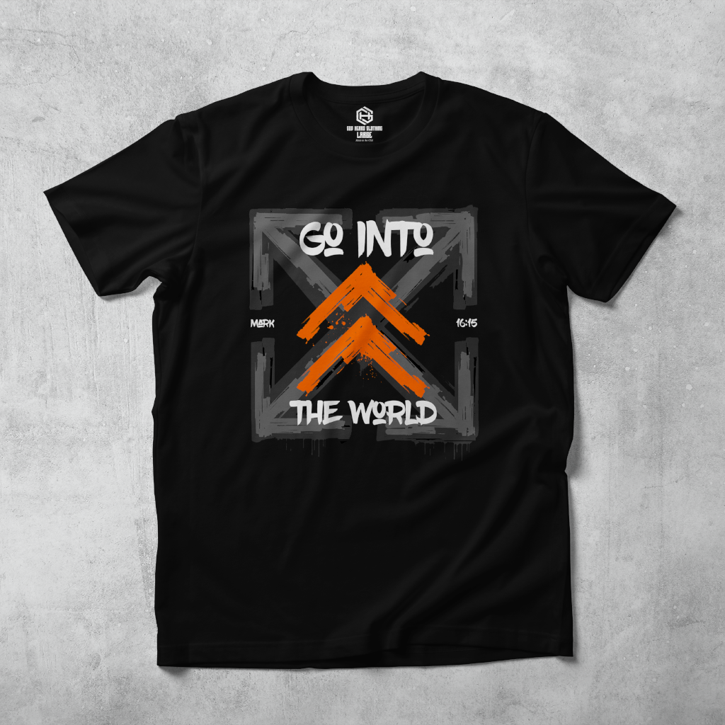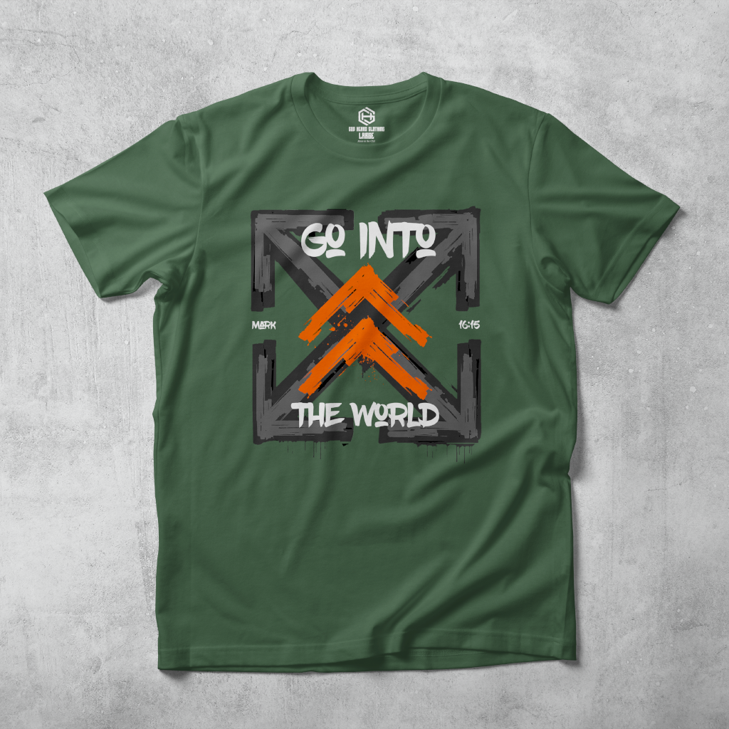 Get your "Go Into The World" T-shirt today with FREE shipping! Based on the scripture Mark 16:15 "He said to them, “Go into all the world and preach the gospel to all creation."