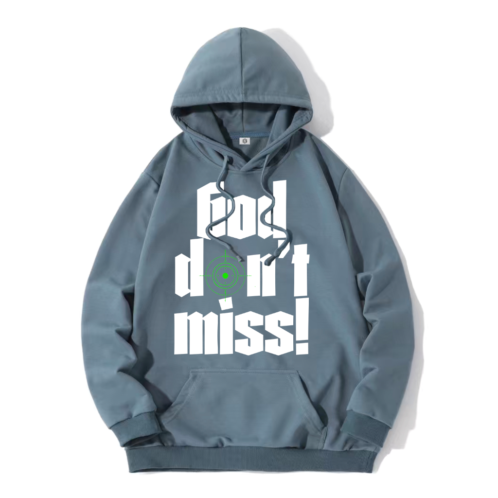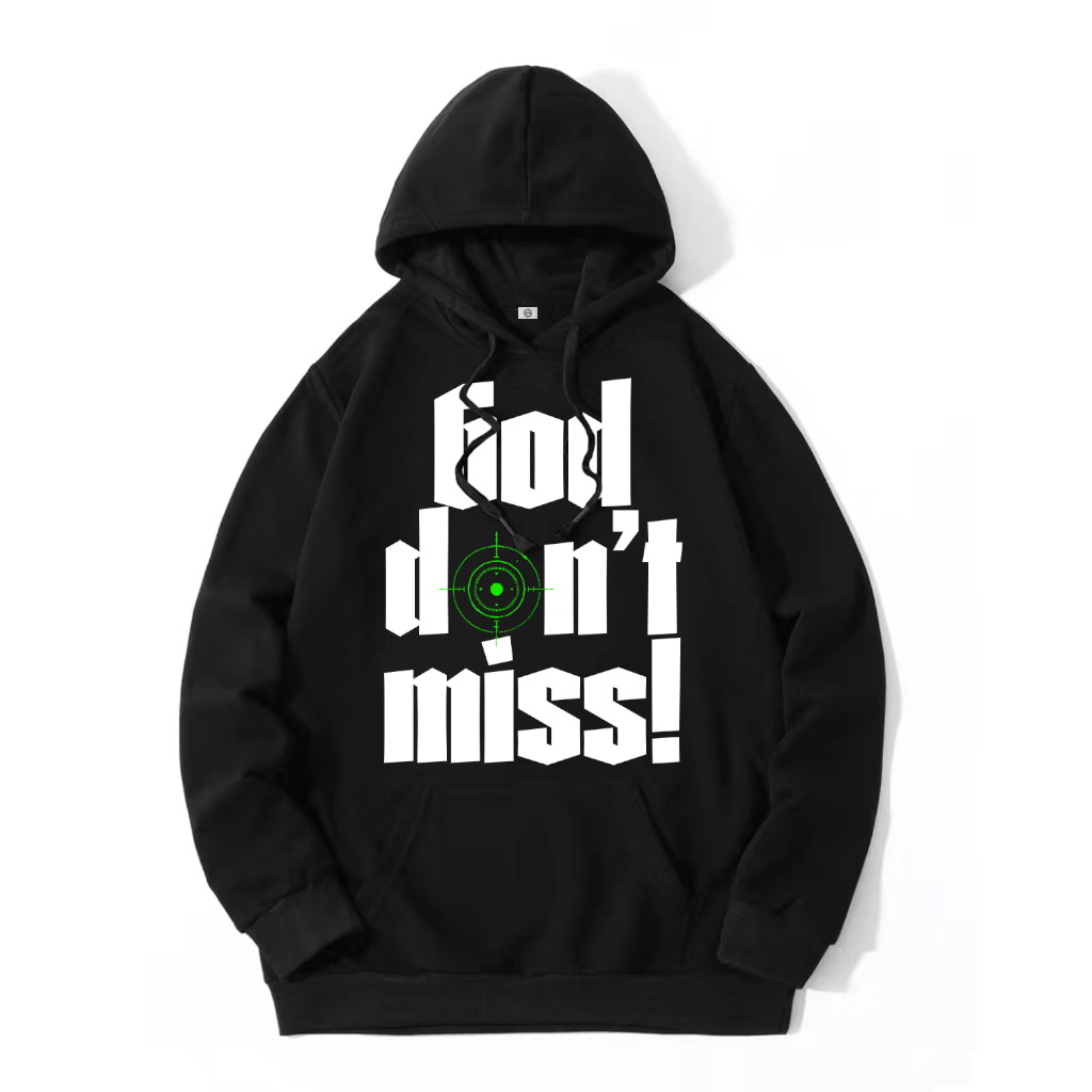 Get your "God Don't Miss" Hoodie Today with FREE shipping! Everything God does is a right on and a hit! No mistakes in the kingdom of God!! Thats what this Hoodie represents!!