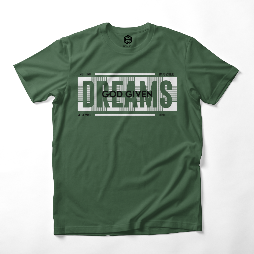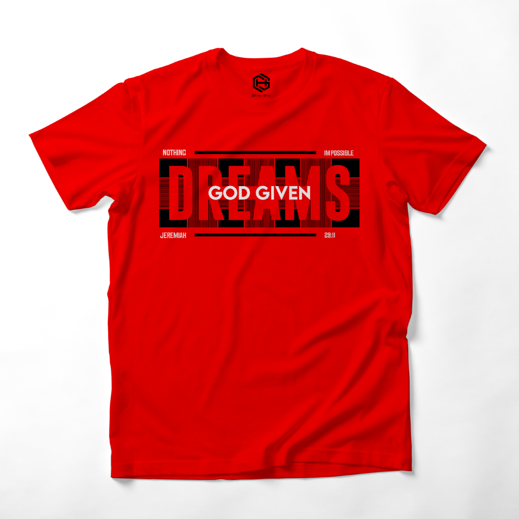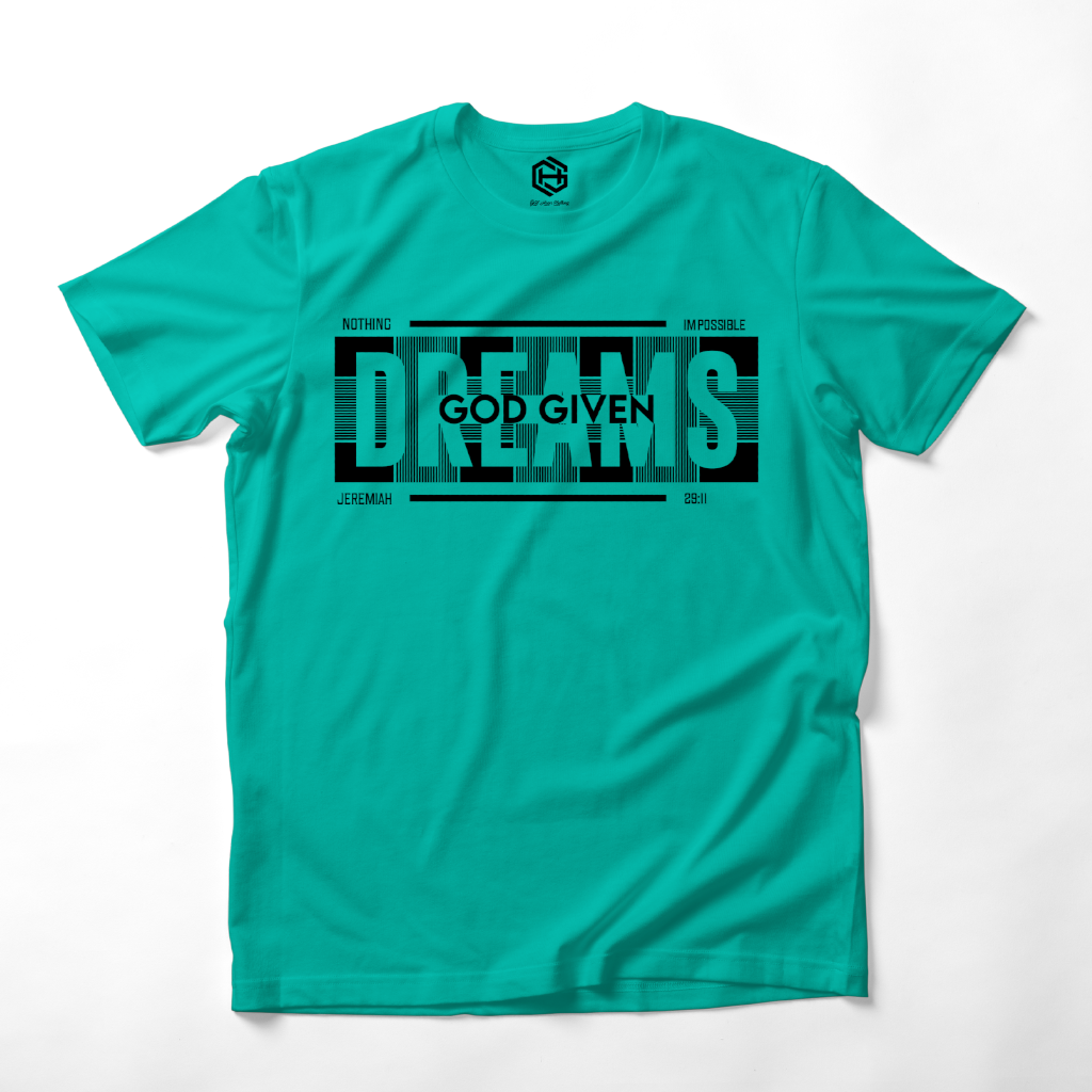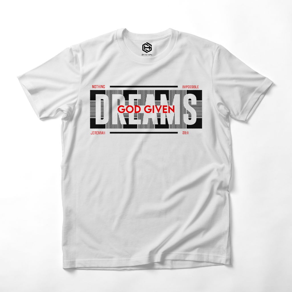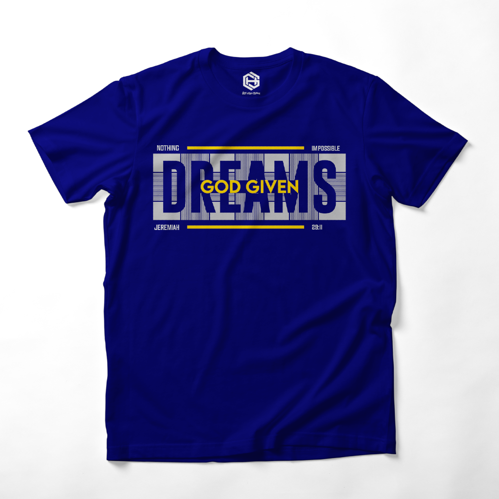 Get your "God Given Dreams" T-shirt today! With FREE 2-3 days Shipping! Based on the scripture Jeremiah 29:11 "For I know the plans I have for you,” declares the Lord, “plans to prosper you and not to harm you, plans to give you hope and a future". God gives us dreams which are his plans!!! To glorify his kingdom!!!