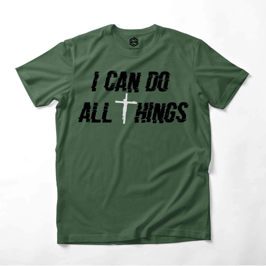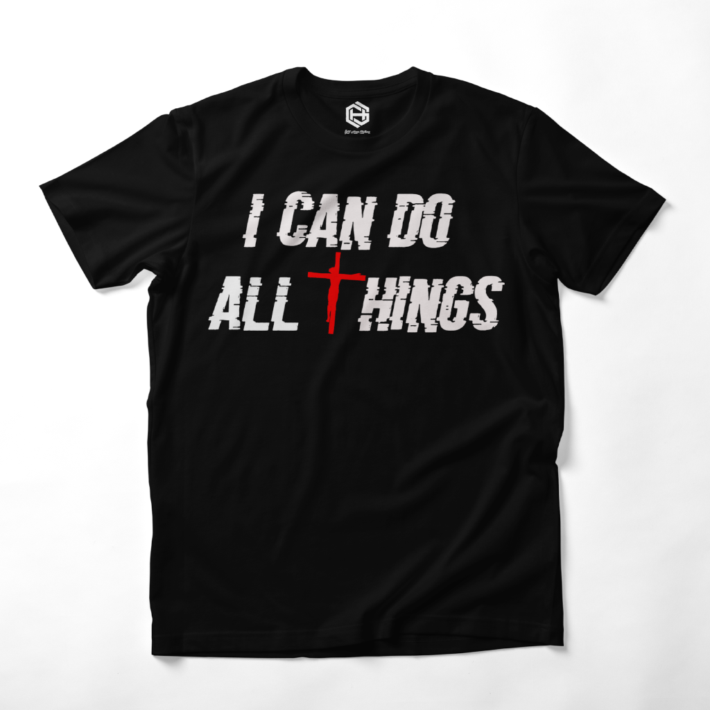 You can do ALL THINGS through JESUS!!! That’s what this T-shirt is based on the famous scripture Phillipians 4:13!