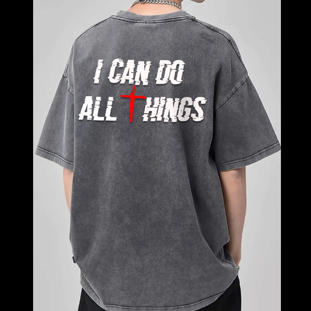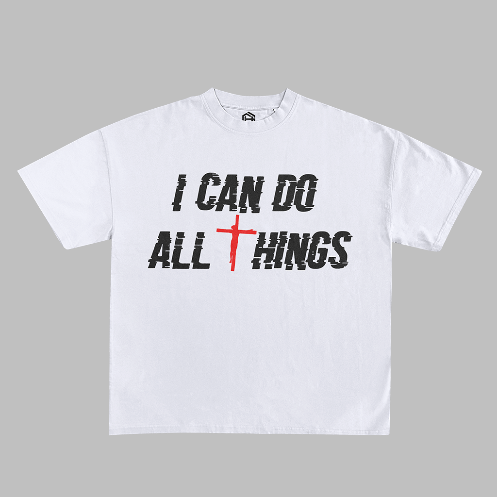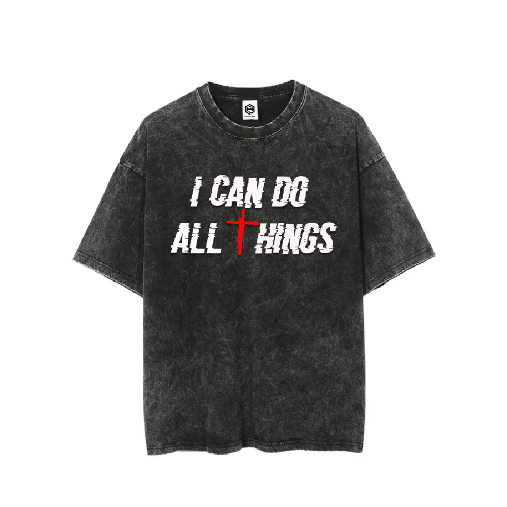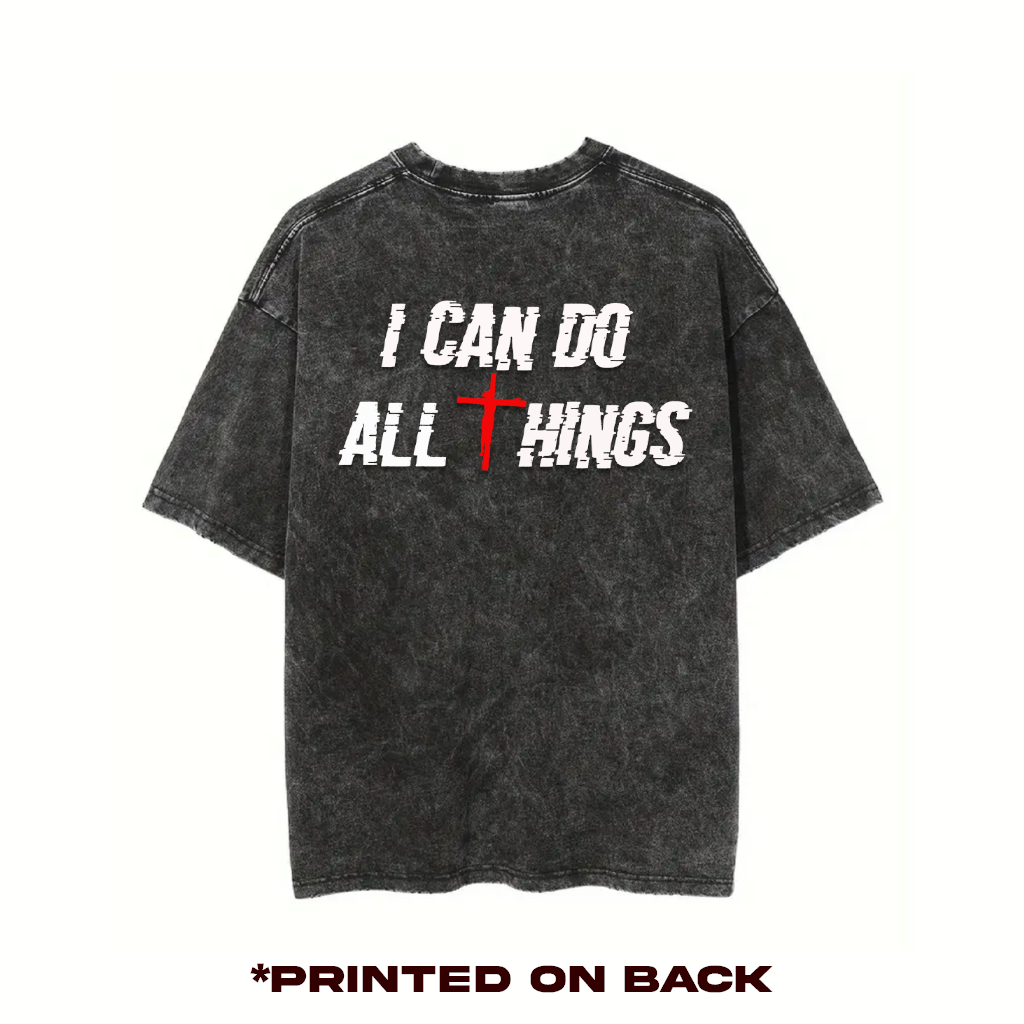 Go big with the Oversized All Things t-shirt – inspired by the iconic Phillipians 4:13 scripture "I can do all things through Christ who strengthens me". Don't miss out on this must-have addition to the God Hears Clothing collection! Get yours now and show the world your inner strength!